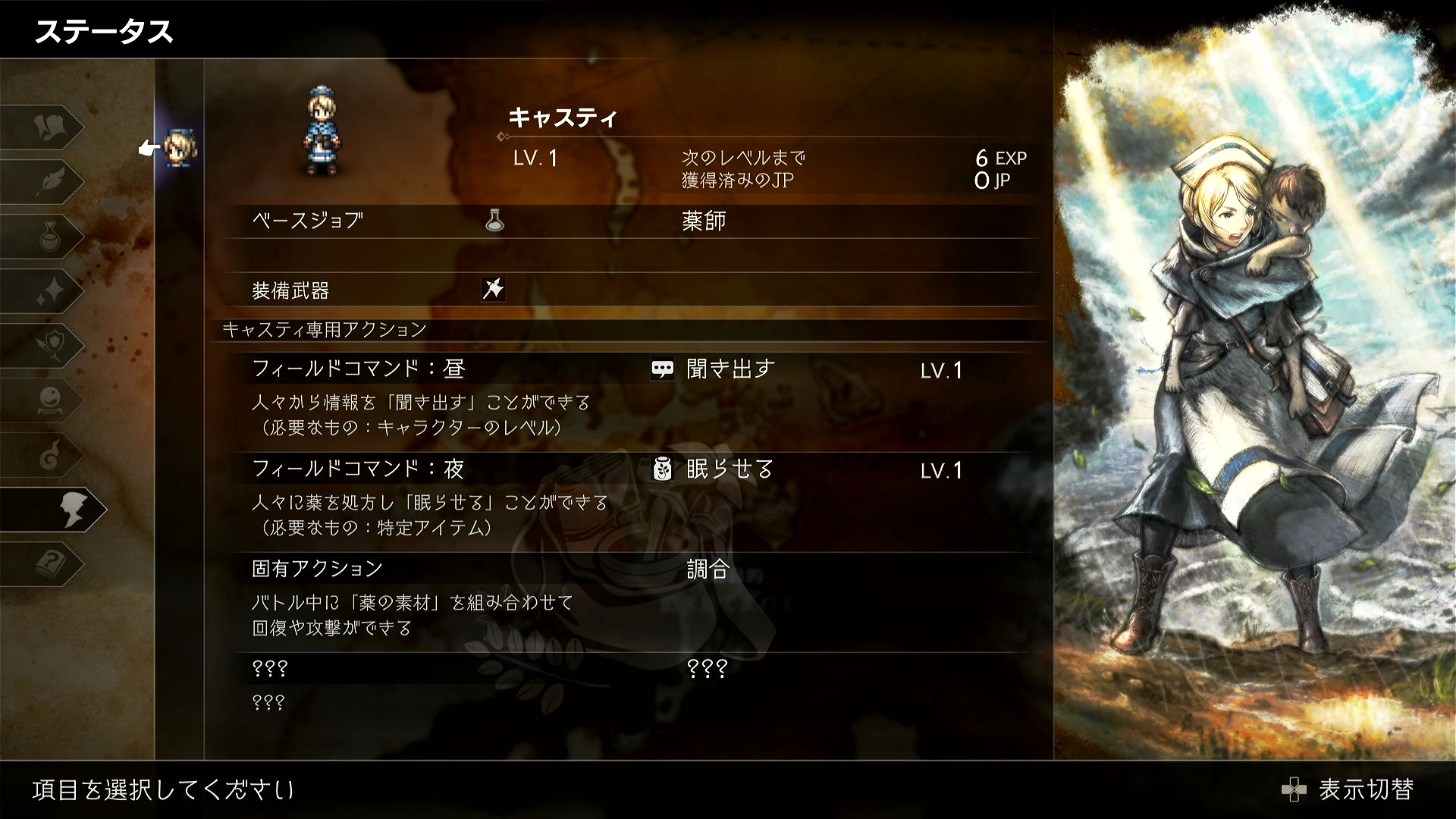 | 7 | 闇に生きる | 時間帯が夜のときのバトル終了時に獲得するEXPとJPが増加する。 |